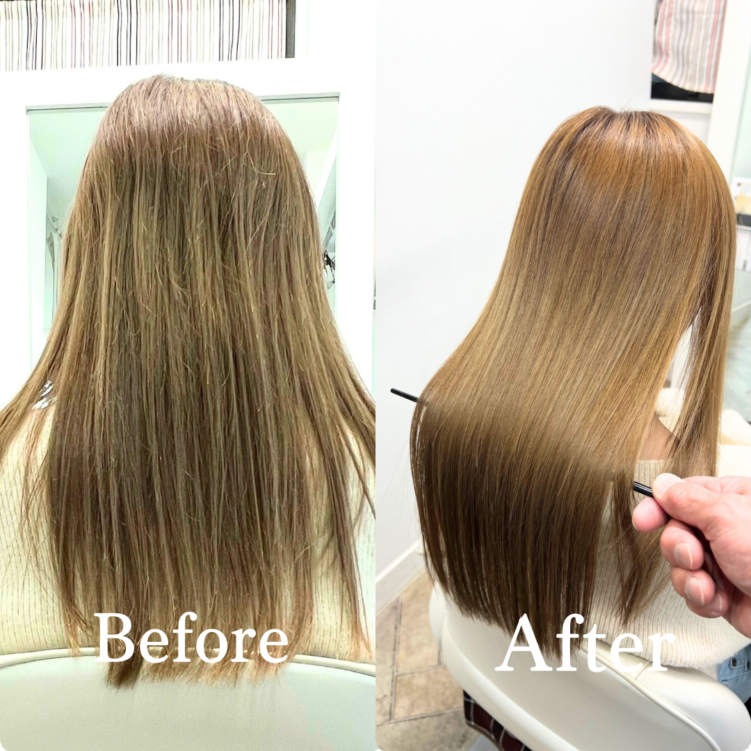 1〜2ヶ月ごとのメンテナンスで、 「傷みにくく・まとまりやすく・ツヤのある髪」へと導きます。