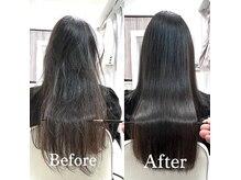 髪質改善(酸性ストレート) (アイロン使用) 酸性ストレート☆気になるうねり/広がりクセの状態に合わせて薬剤設定できるのでいろんな髪質に対応で来ます。※ロング料金¥550~。 |