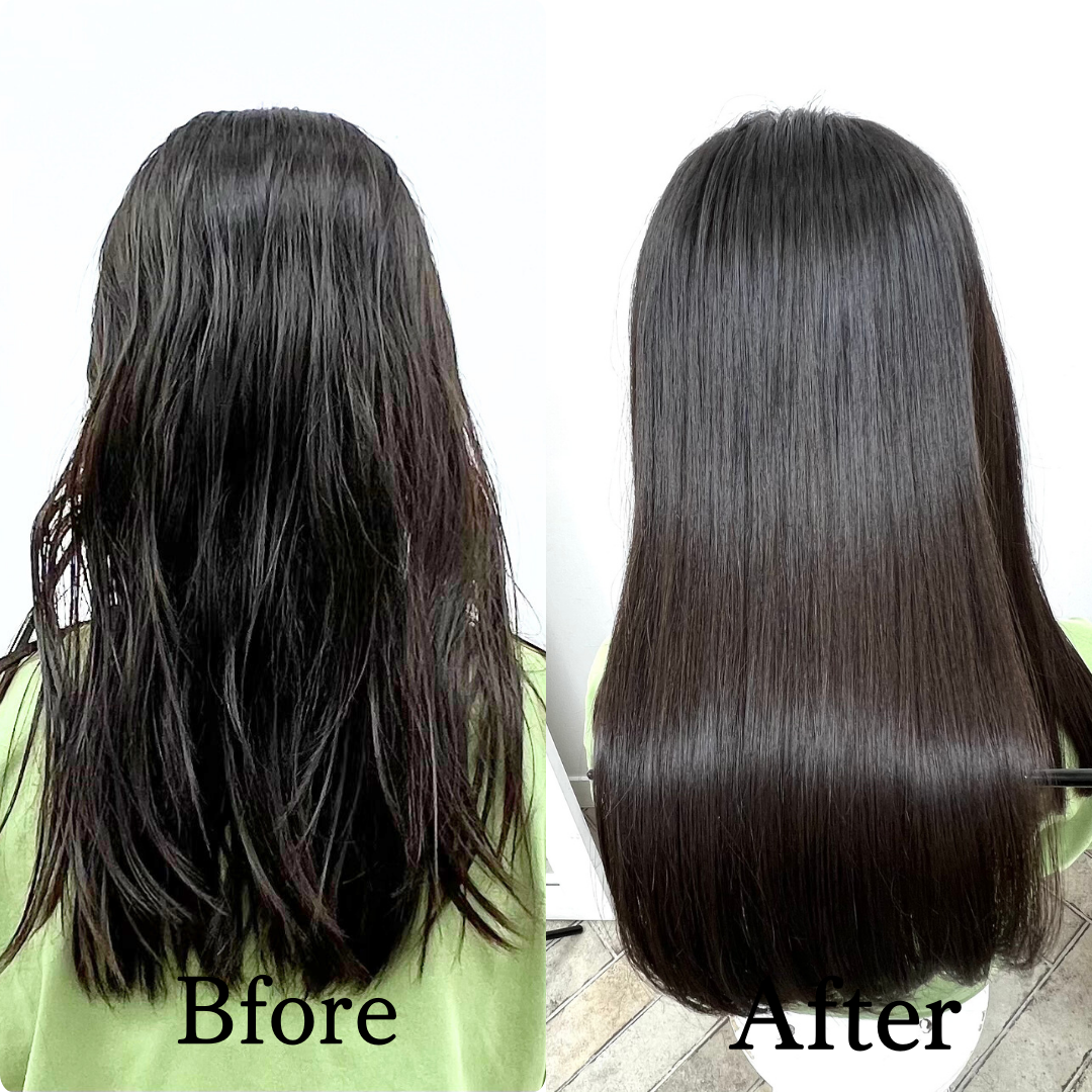 カットする前に骨格、髪質を見させていただき切ってもお手入れに時間がかからずに簡単にできる、またトップのボリュームのお悩みが解消される様でしたら短く切らせていただきます。 お手入れに時間がかかる様でしたら縮毛矯正や切らない方がいいと正直にお伝えいたします。 理想のヘアスタイルをしっかり共有してから施術いたしますのでご安心ください。 |