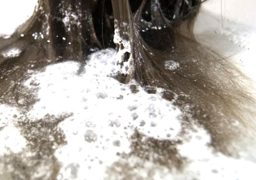 鏡に映るうねり、チリつき、ツヤのない毛先。